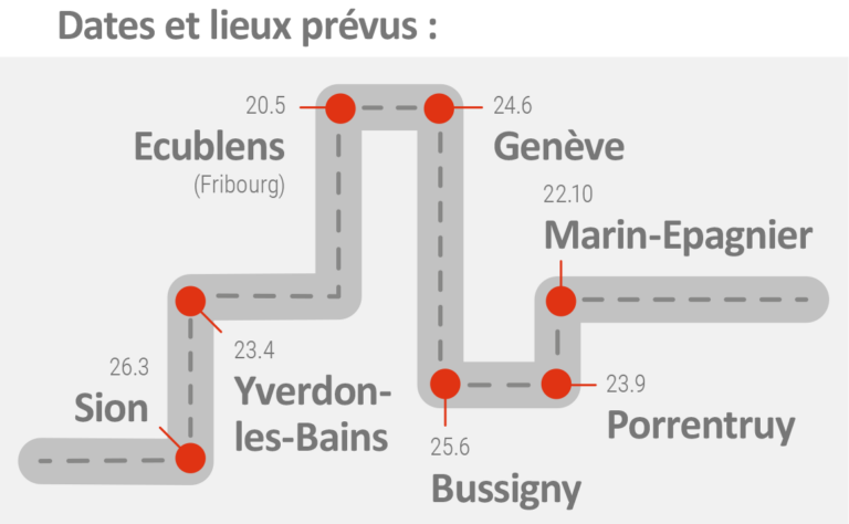 26.3 Sion | 23.4 Yverdon-les-Bains | 20.5 Ecublens | 24.6 Genève | 25.6 Bussigny | 23.9 Porrentruy | 22.10 Marin-Epagnier